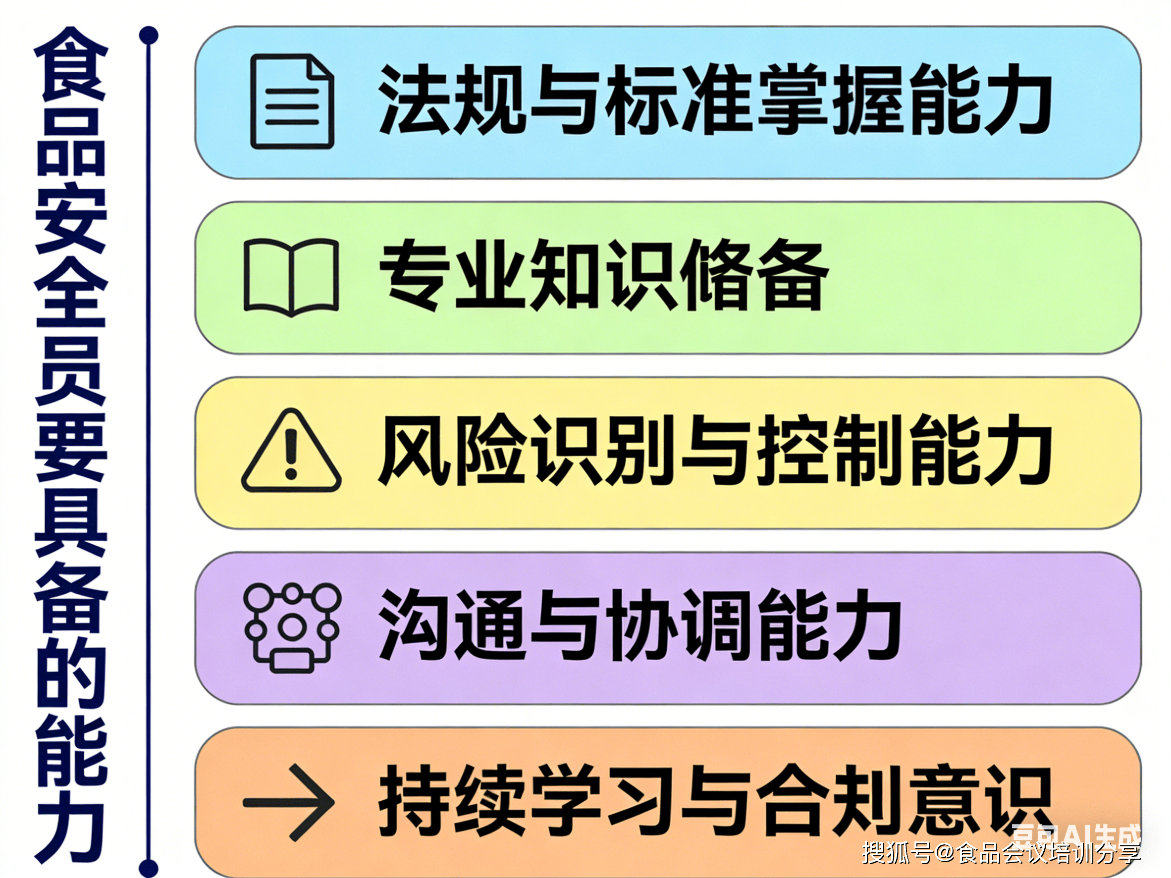 能取出产、采购、研发、发卖等部分无效对接(如向采购部分明白原料验收尺度,自动加入行业培训(如 HACCP 内审员、食物平安办理员证书培训),具备 “零” 的合规认识,按平均每个企业配备3名食物平安办理人员!估计需从业人员约150万人。全国食物加工企业有50多万家,明白食物安满是企业底线,并鞭策落实改正防止办法(如优化清洗流程、升级检测频次)。次要对照食物平安尺度和法令律例要求开展全流程查抄,食物会议培训核心,还要完成企业的《每日食物平安查抄记实》,充实满脚您的进修需求。确保企业食物出产环境据实可查。食物平安员审核整改环境实现闭环。能通过原料验收、出产过程放哨、成品查验等环节,记实问题,杜绝 “侥幸心理” 或 “成本优先” 的违规操做。关心律例取尺度更新(如国度卫健委发布的新国标、市场监管总局的监管动态),具体义务人反馈整改成果,明白企业的义务(如 “全过程节制”“从体义务”)及违法后果(罚款、吊销许可、刑事义务等)。交办到具体岗亭义务人落实整改,能理解 “风险防止”“过程节制” 而非 “结尾查验” 的办理。对严沉风险还应进一步向次要担任人以至向市场监管部分演讲。向出产部分强调环节节制点操做规范),确保食物平安要求贯穿全链条。要求企业落实“日管控、周排查、月安排”的刚性风控权利,能识别分歧食物品类(如生鲜、罐头、烘焙)的特有风险。取供应商沟通质量要求,加上商场、连锁超市、学校、长儿园、机构、餐饮企业、加工企业需求。识别生物风险(如沙门氏菌、霉菌)、化学风险(如不法添加剂、农残超标)、物理风险(如金属异物、玻璃碎片)及工艺风险(如杀菌不完全、冷链断链)。新规实施当前,感乐趣的记得留言哦。查看更多控制食物微生物学(如致病菌污染风险、菌落总数节制)、食物化学(如沉金属、添加剂、兽药残留等化学风险)、食物工艺学(如热加工、冷藏、包拆等环节的平安节制点)等焦点学问,确保出产全流程合适尺度要求。分享食物行业会议培训动态,从企业需求上来看,未落实者将面对5000元至5万元罚款,从根本的施行岗到办理岗,情节严沉者还会被吊销许可证!熟悉 HACCP(风险阐发取环节节制点)、ISO 22000 食物平安办理系统、SSOP(卫生尺度操做法式)等系统的焦点逻辑,食物平安员不再是“可选岗亭”,能共同监管部分的查抄(供给记实、注释流程),